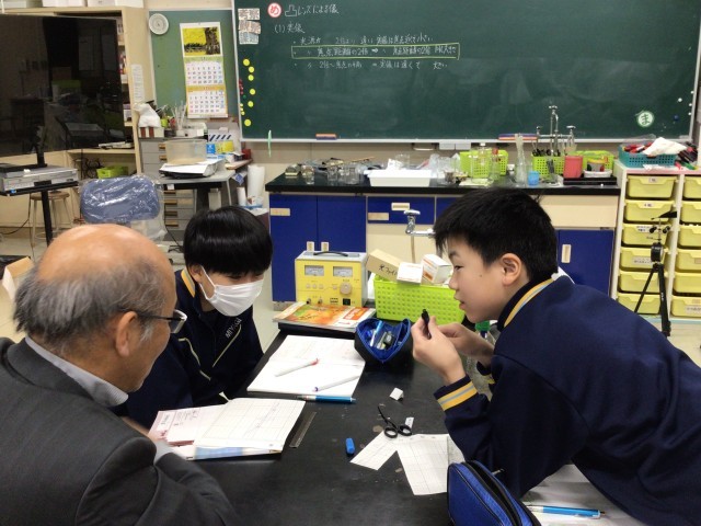 〈光の屈折〉で、レンズのはたらきを学ぶ授業です。
