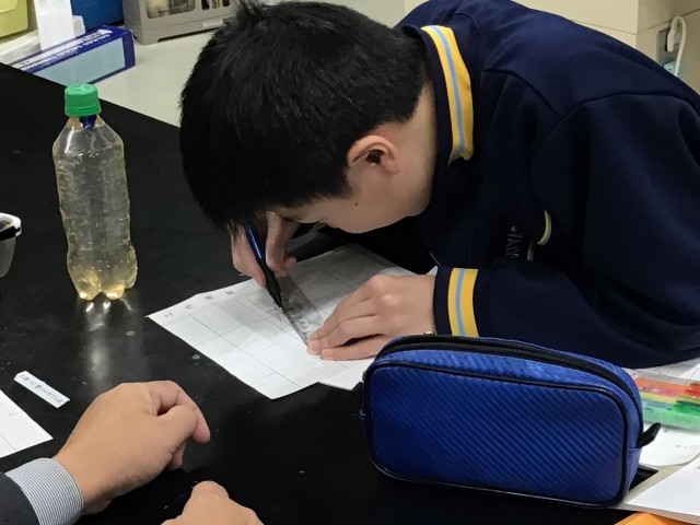凸レンズを通る光の進み方を学び、図に書いて理解を深めています。