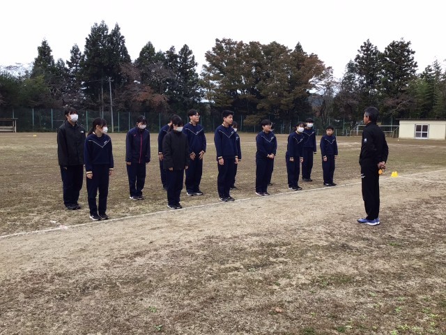 今日の3校時は合同体育で、来週水曜日に予定されている校内ミニ駅伝大会に向けての練習です。来週予定されている校内ミニ駅伝は、4~5人の3つのチームに分かれ、4区間でタスキをつなぎます。校庭のトラックと学校脇の道路を使い、1周850mのコースです。