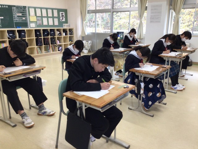 3年生は、本日実力テストです。今の自分の力を確認できる機会であると同時に、入試を見据えてテストに慣れる機会でもあります。みんな真剣に臨んでいます。