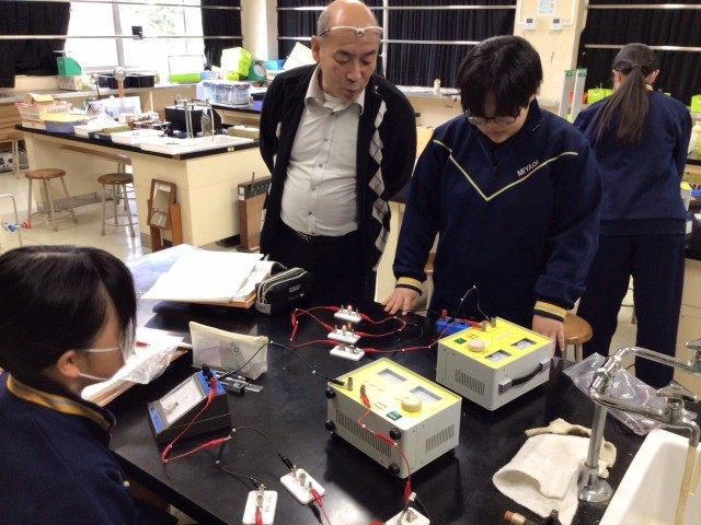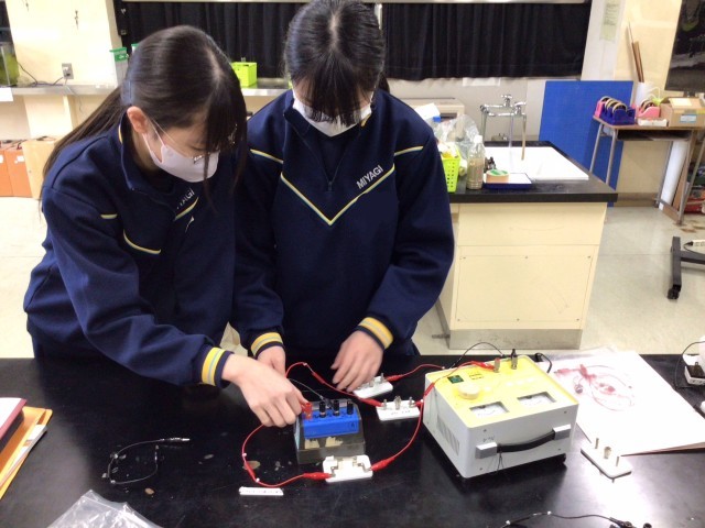 直列回路と並列回路で、電流や電圧の関係を調べています。