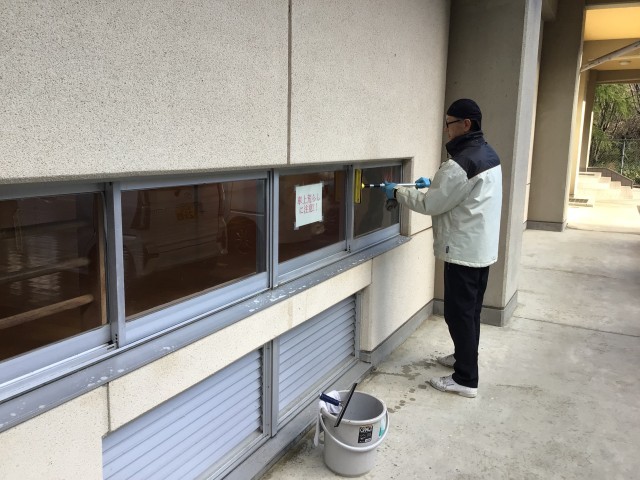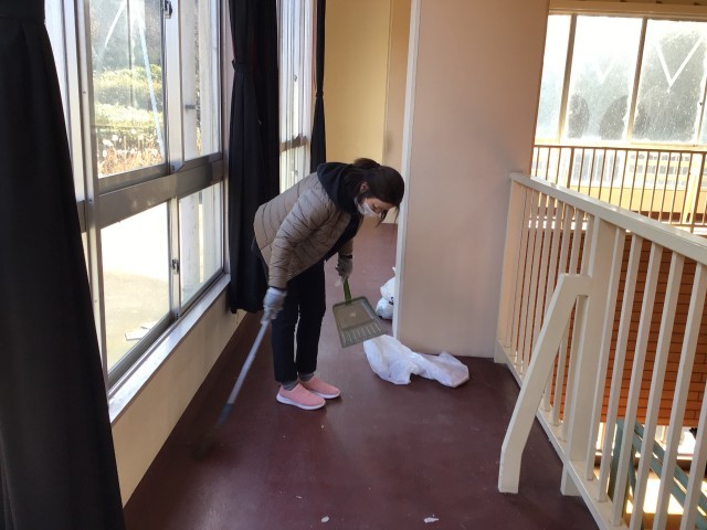 用務員さん、スクール・サポート・スタッフさんの体育館清掃。