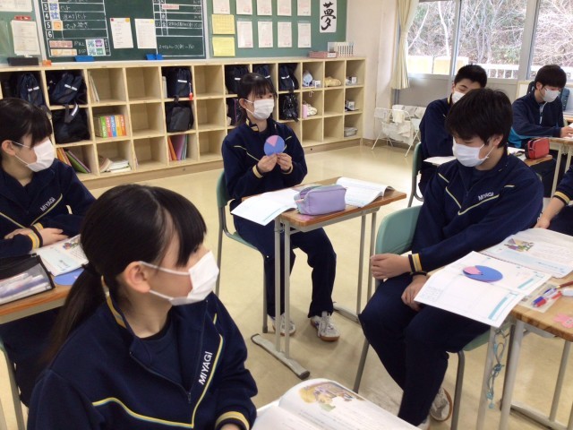 加山さんや中井さんの心の揺れや、自分の考えの割合を「心情円」を使って視覚化しながら発表していました。