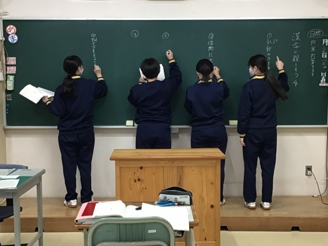 「漢字に親しもう」で、教科書の様々な問題に取り組んでいます。みんな、漢字は得意なようです。素晴らしい!
