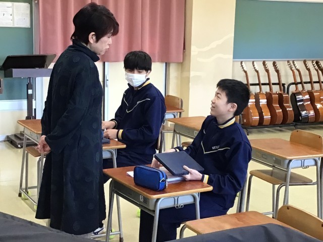 卒業式に向けて、1年生も式歌の練習に入っています。「旅立ちの日に」と「絆」は、どちらも卒業式にふさわしい心に響く感動的な曲です。素敵な歌声を響かせて、感動的な卒業式を演出してくださいね。