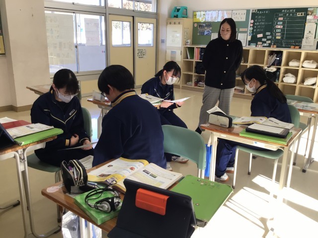 これまで、この単元で学んできた世界遺産について、ペアで伝え合っています。