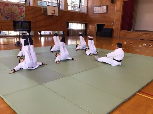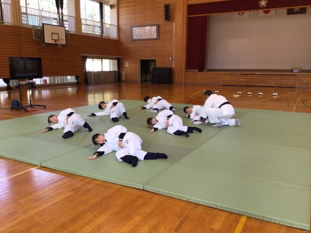 今日は、ビデオを見ながら体さばきを練習し、その後いろいろな受け身の練習をしています。
