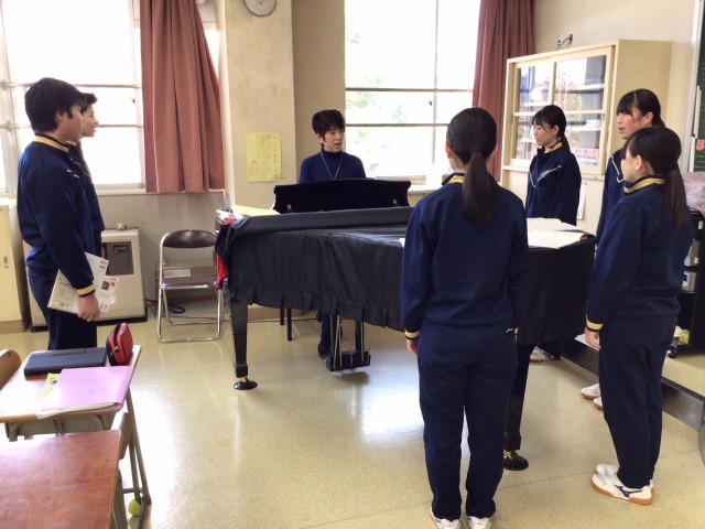 卒業式の式歌を練習しています。発声や口の開き方などを細かく確認していました。主役の3年生には、思い出に残る素敵な歌声を響かせてほしいですね。