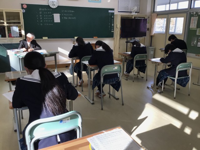 3年生は、最後の実力テストです。入試予想問題に挑んでいます。がんばれ!