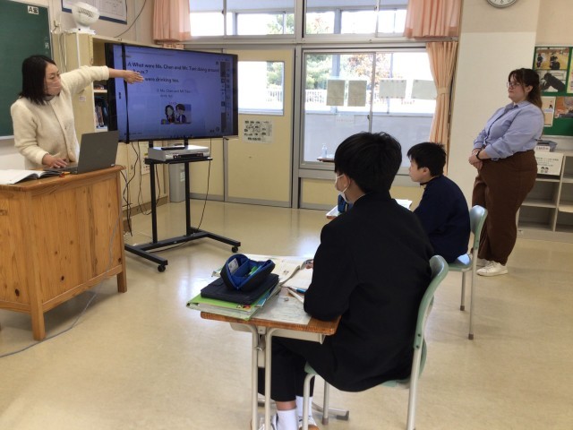 過去進行形を学んでいます。be動詞 + ~ ing の形です。was と ware の使い分けもちゃんとできていますね。