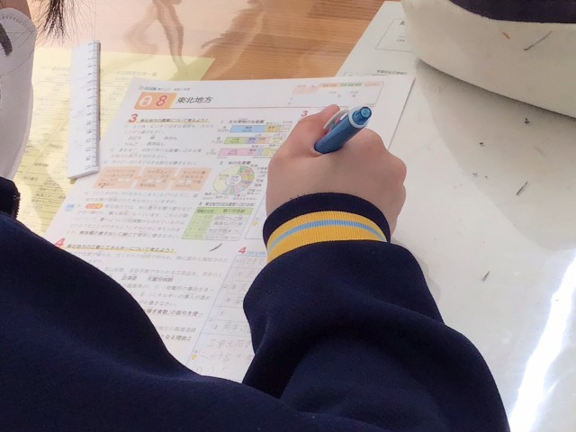 今日は〈東北地方〉の単元テストでした。みんな真剣に取り組んでいました。