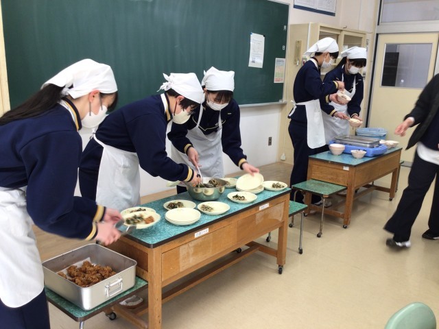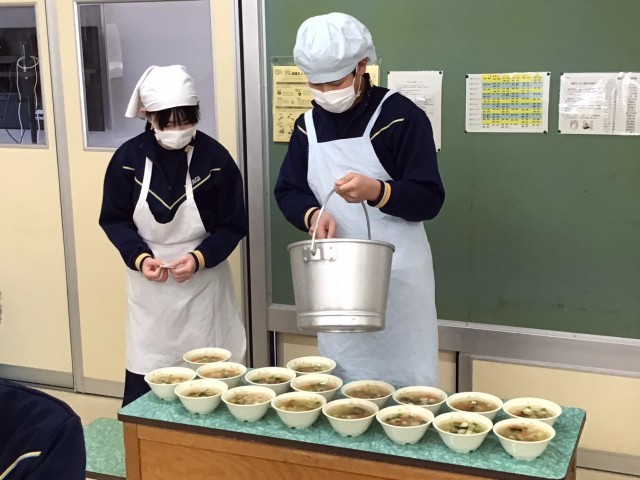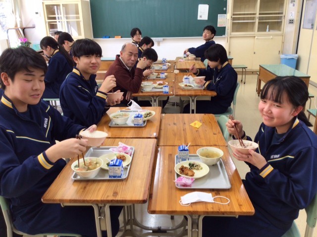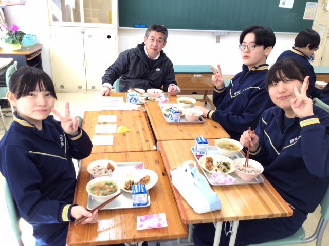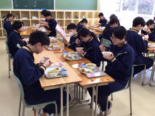 3年生は、全校生で食べる最後の給食です。明日の卒業式のために、おいしい給食をたくさん食べてくださいね。