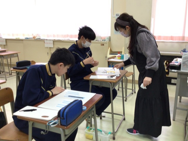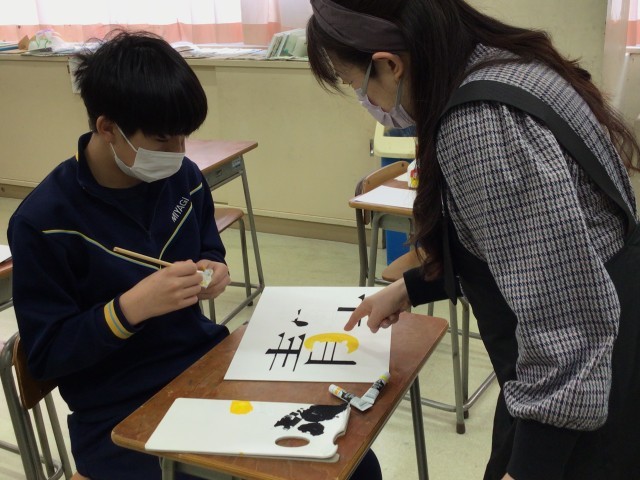 作品制作に集中していて、言葉をかけるのもはばかられます。今日の2時間で完成させるようです。