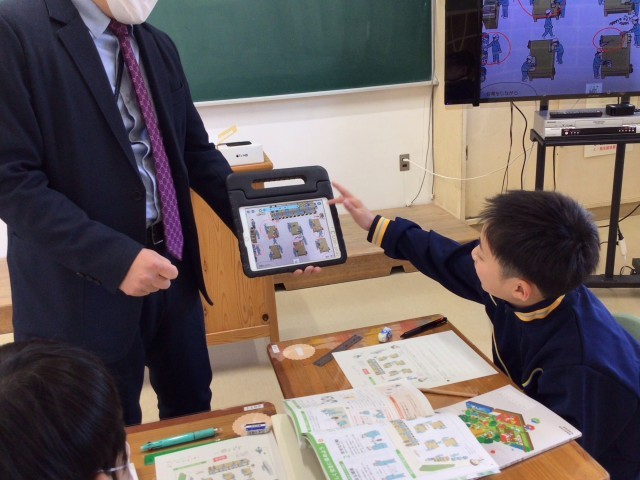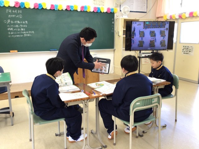 自己紹介とこれからの授業の進め方のガイダンスのあと、早速教科書に入りました。1年生は、前期に木材加工を中心に学習します。教科書では、木工作業をしている技術室のイラストから危険個所を見つけて発表していましたが、なかなか気づかない所を見つけて積極的に発表していました。素晴らしい!