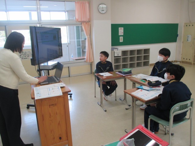 本日4校時の英語の授業では、「~は好きですか」という表現を使い、英語でお互いに質問し合う活動を行いました。授業ではデジタル教科書を活用し、視覚的にもわかりやすく学習を進めています。「Do you like cats?」など、生徒たちは笑顔で会話を弾ませ、活発に英語でのコミュニケーションを図っていました。