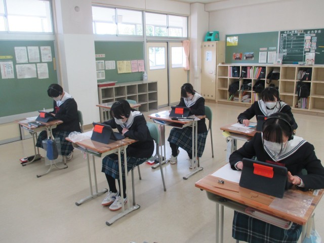 全国学力・学習状況調査を実施しました 公開日 2026/04/23 更新日 2026/04/23 今日の出来事 本日4月23日、全国学力・学習状況調査を実施しました。国語・数学に加え、英語(3技能)はタブレットとヘッドマイクを使用するCBT方式で行われました。生徒質問紙を含め、皆真剣な態度で取り組んでいました。