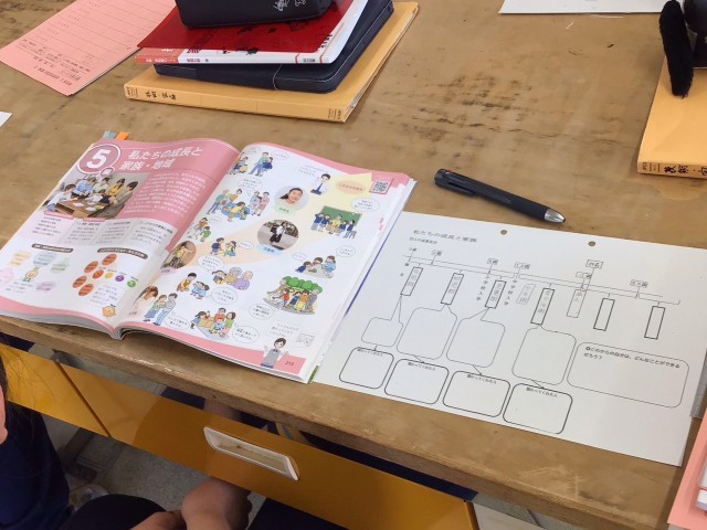 〈家族・家庭生活〉では、自分の成長と自立、家族・家庭の役割、幼児との触れ合い、高齢者や地域との関わり などを学んでいきます。7月9日の体験学習の日には、3年生は妊婦体験も計画しているので家族や家庭、幼児の学習に興味を持って取り組んでいくことでしょう。GW中の宿題として『自分の成長を振り返ろう』のプリントも出されました。お家の方と自分が幼かった頃のことを話してまとめます。いい写真が見つかるといいですね。