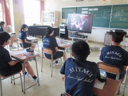 ブルダバの音楽鑑賞。大きなスピーカーから迫力ある音量。二つの源流が合わさり,月光を反射しながら流れている様子を感じられるかな?
