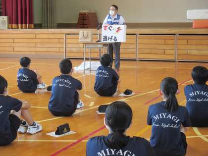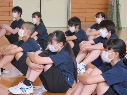 後半はスクールサポーターの高橋先生を講師に、不審者対応について講義をいただきました。不審者とは距離を十分に取ること、見通しの悪い、人気の無い場所では特に注意をすることを習いました。自分の身は自分で守る!
