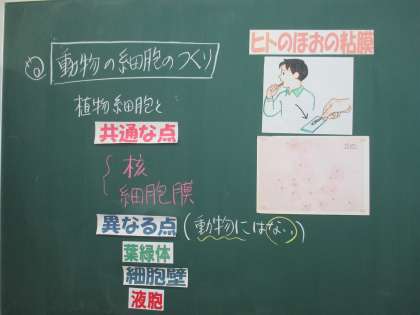 動物も植物もミクロの世界では共通点があるんですね。細胞のつくりを調べました。