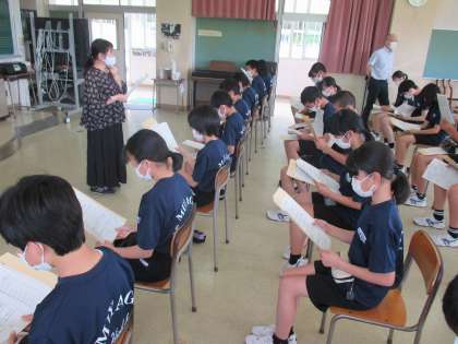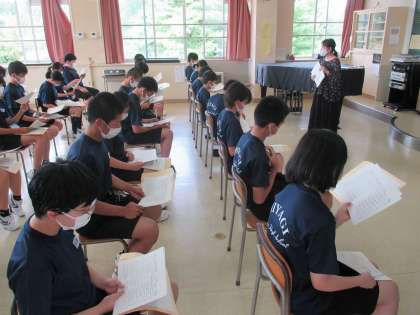 来週月曜からのタブレットの持ち帰りについて,全校生に担当より話をしました。実証研究の期間中に、宇宙飛行士のライブ通信を視聴する計画で、タブレットだからこそできる学習にも挑戦させたいと考えています。