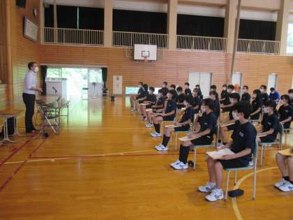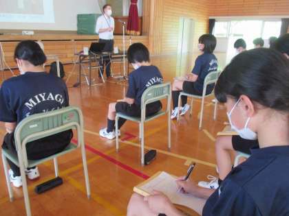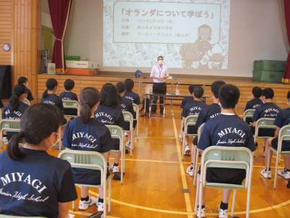 市の文化スポーツ部国際政策課より2名の講師の先生をお招きし職業講話を実施しました。職業で海外への選択肢も増えたかな?