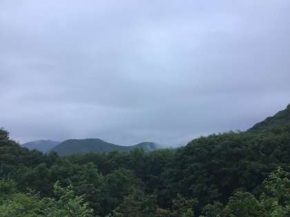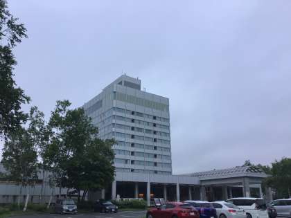 空気も澄んでて気持ちがいいです。お腹が空きました。朝食が楽しみです。昨日の夕食と同じ最上階での食事です。