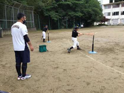 ティーバッティング。思いっきり飛ばせ〜