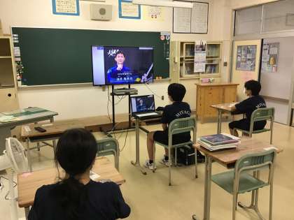 日本初の教育活動。筑波宇宙センターと宇宙ステーション、宮城中がつながっています。