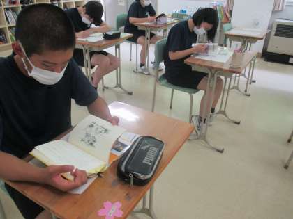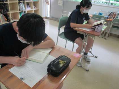読書感想文や漢字など、各自が課題に取り組んでいます。