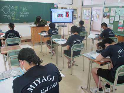 切り口が1辺が32cmの正方形の柱を取り出すには、丸太の直径は最低何cm必要でしょう?三角形の比率を利用して予想しよう。