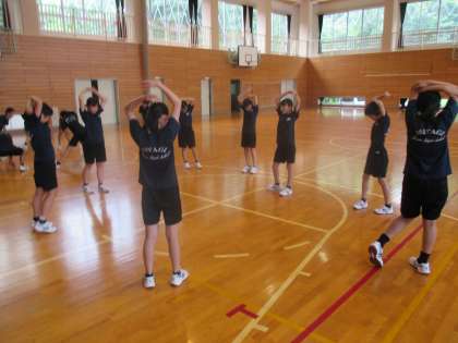 グランドが緩いため体育館で入り込みをしました。「運動だけじゃなく、栄養面にも気をつけよう!」と先生からアドバイスがありました。好き嫌いをなくそう!