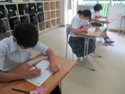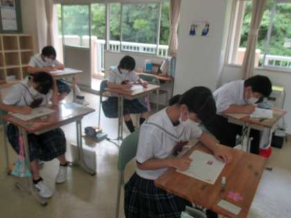 単元テスト。文章の抜き出しや漢字は良く出来ていたようですね。高得点が期待できるかな?