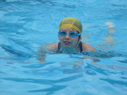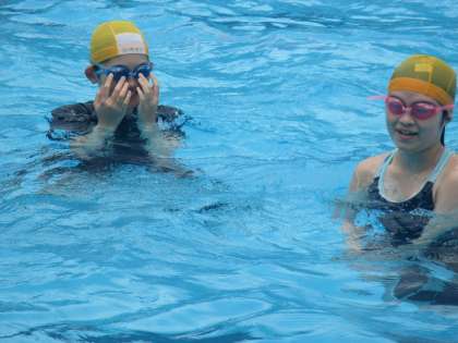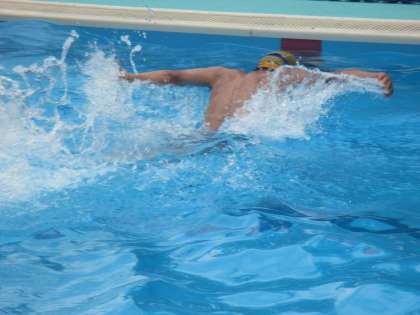 平泳ぎのカエル脚が難しいようです。足首をしっかり曲げて足裏で水を蹴る!バタフライ、ダイナミックな泳ぎですね!