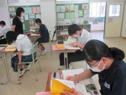 新しい単元、英文の全体を読んで意味を考えましょう。分からない単語は前後の分かる単語から推理します。どうしたも分からない単語は辞書で調べよう!
