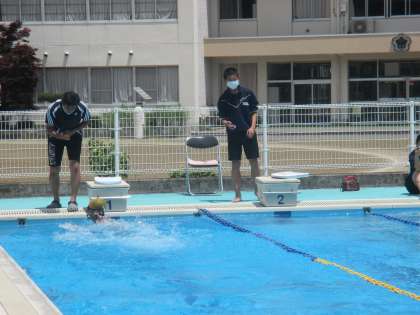 今日のプールは気持ちよさそうですね!25mを2種目でタイム測定しました。自己ベストでたかな?
