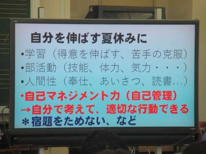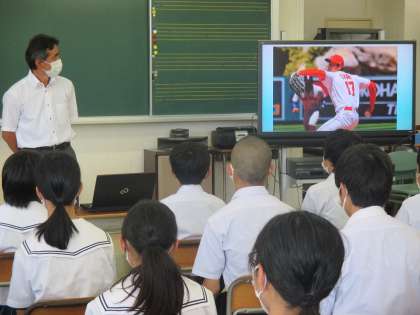 メジャーリーグで活躍する大谷選手のエピソードをもとに、目標を持って生活すること、常日頃の心がけが大事なこと、お話がありました。夏の努力が秋の実りとなって成果が現れますね!