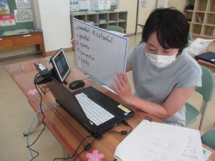 顔を見ながら話が出来るって良いですね!タブレットならではの双方向授業もできました。