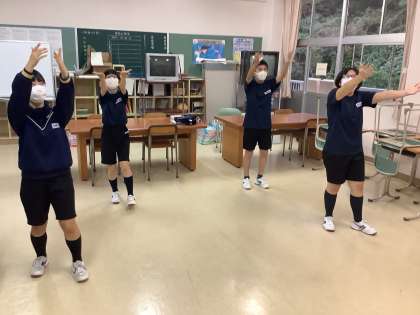 班に分かれてダンス練習です。納得のいく練習できたかな?練習動画確認中!