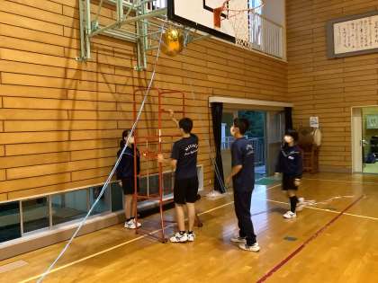 苦労して製作したくす玉。しっかり設置!と思ったら、試し割り用の設置でした!