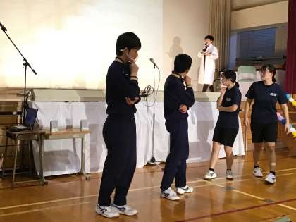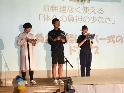 ユニバーサルデザインの発表とダンス、制限時間内で効率よくリハーサルです。道具が多いので準備も大変です。