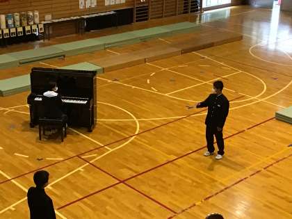まずは校歌で発声練習です。