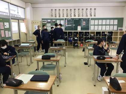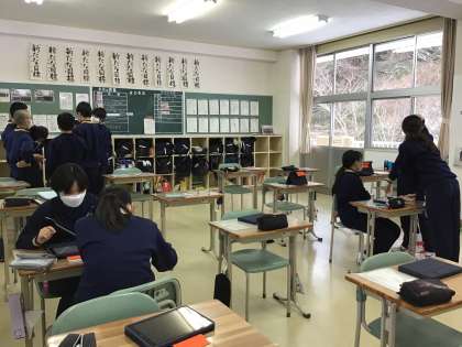 送別会の出し物を決めています。楽しそうに話し合っています。