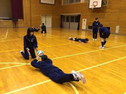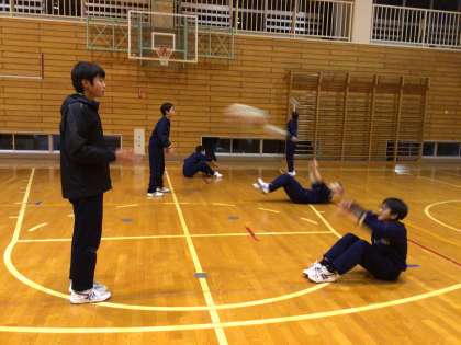 腹筋背筋つかってくださいね〜。つらそうですが皆楽しそうです。