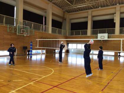 1年生のみでの対面パス丁寧に行っています。突き指に気をつけて!