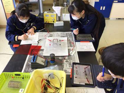 コイルの周りの磁界を鉄粉で確認。きれいに磁力線が出ましたね!