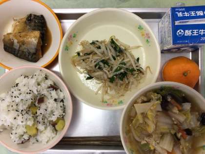 リクエスト献立。2年生です。サバの味噌煮渋いですね!