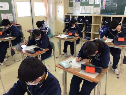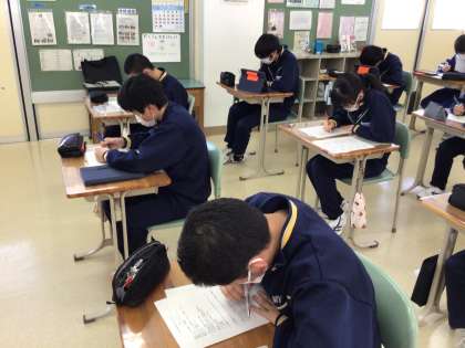 修学旅行に向けて、準備開始です。アンケート記入。
