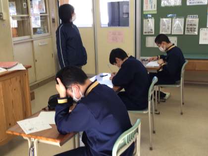 聞き取りのテスト。放送を聞いて問いに答えます。メモをとりながらしっかり!
