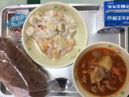 ケチャップ煮、フルーツヨーグルト、いただきます!
